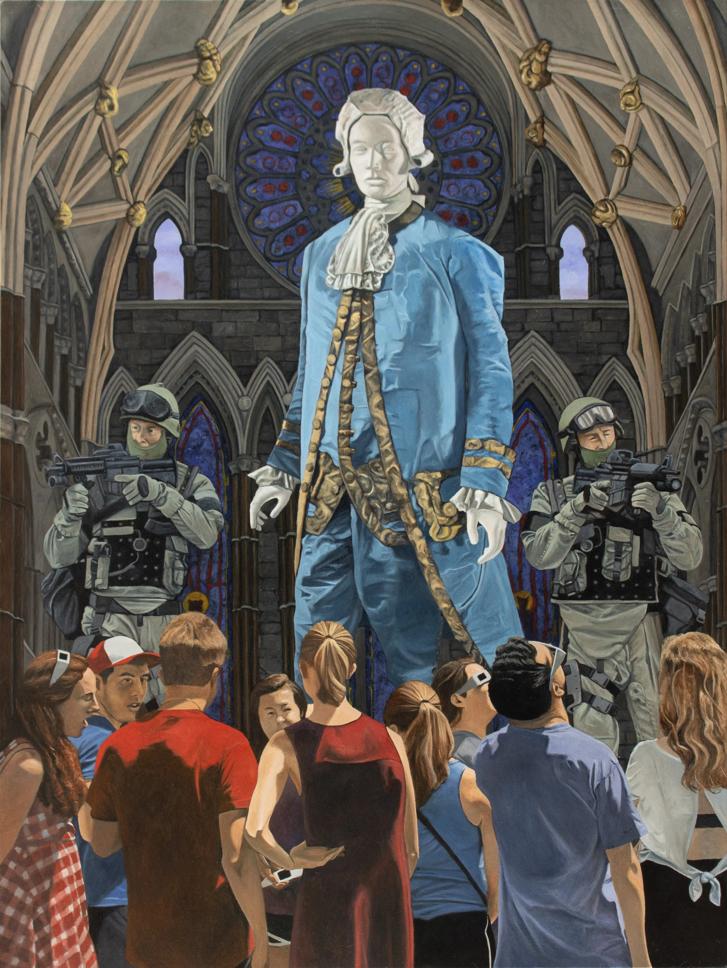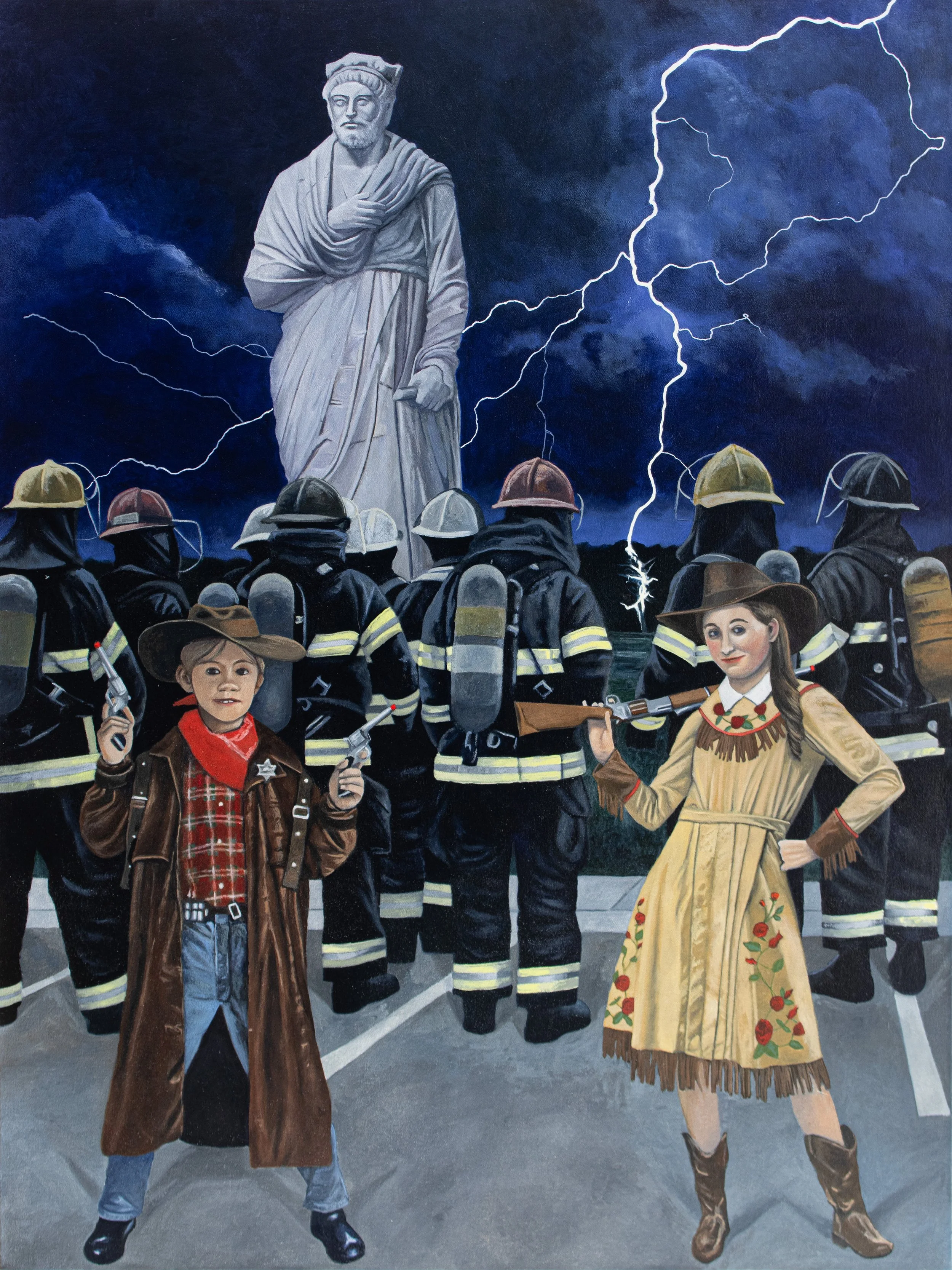 Painting is an ideal vehicle for exploring these ideas as the painted image carries a tremendous cultural weight. Painting also remains a vital part of contemporary art and as such is a concept-driven expression of the individual. Equally as important, there is an inherent expectation of discovering truth through the hand of the artist in the painted, narrative image. This is a powerful force in the mind of the viewer. I present the possibility of meaning through various appropriations and arrangements, however it is up to the viewer to find the connections and relationships necessary for a personal interpretation.